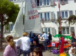 Die Kinder konnten einen Optimisten und einen 420er „anfassen“, sich reinsetzen und wurden über das Segeln und den RYC informiert.