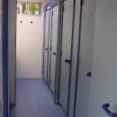 Diese Sani-Unit wurde von der holländischen Fa. Pecocar gebaut und schlüsselfertig geliefert. Sie ist aus hochwertigem Kunststoff (kein Container!) gefertigt und verfügt über 4 Duschen, 4 Toiletten, 4 Waschbecken und 2 Urinals. Im Vorraum befinden sich eine Waschmaschine und ein Trockner.