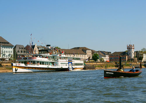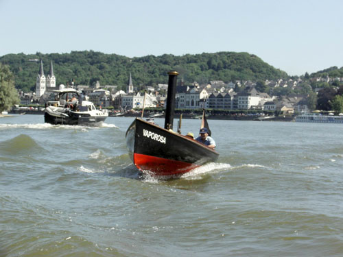 „VAPOROSA“ und der Raddampfer „GOETHE“ der KD sind die einzigen noch aktiven Dampfschiffe auf dem gesamten deutschen Rhein.