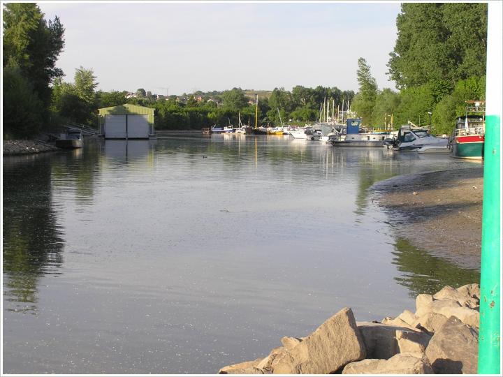 Im hinteren Hafenbereich Binger Pegel + 110 cm .